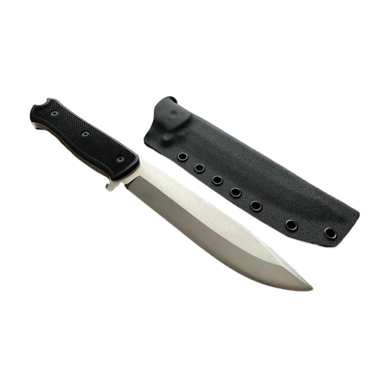 Tá scian fillte Kydex le sheath ar fáil i súilíní ar thaobh amháin agus súilíní ar an dá thaobh. Chun an scian a cheangal leis an gcreasa ar an mbealach clasaiceach, go cothrománach nó go hingearach, is gnách go roghnaíonn mo chustaiméirí Il-Lok. Más mian leat an scian a iompar beagán níos ísle, molaim strap níolón le sealbhóir Kydex. Más mian leat an scian a iompar faoin gcreasa le ceangaltán docht, d'fhéadfadh Il-Lok le síneadh a bheith ina rud éigin duit. Tá gearrthóga nó Velcro iontach chun an scian a iompar ar fud an crios. Is réiteach praiticiúil é an Velcro freisin chun an scian a cheangal le strap an mhála droma. Chomh maith leis an sheath Kydex, is féidir liom sealbhóir cruach dóiteáin a cheangal, go roghnach le cruach dóiteáin (fad 80mm).
