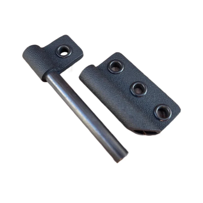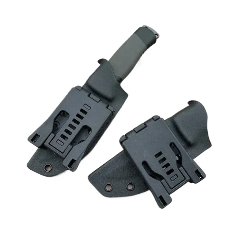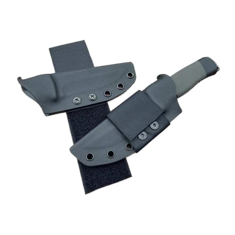 Chun an scian lasmuigh a cheangal le do chrios ar an mbealach traidisiúnta, go cothrománach nó go hingearach, molaim Il-Lok. Más mian leat an scian a iompar beagán níos ísle, molaim gearrthóg le síneadh. Tá Velcro iontach chun an scian a iompar trasna do chrios. Is réiteach praiticiúil é Velcro freisin chun an scian a cheangal le strap do mhála droma. Chomh maith leis an scian sheath Kydex, is féidir liom sealbhóir cruach dóiteáin a cheangal, go roghnach le cruach dóiteáin (fad 80mm). Ar fáil sna dathanna is gnách, gan fuaim, mar shampla: donn, coyote donn, gaineamh agus olóige. Má tá aon iarratas agat maidir le dathanna, patrúin eile, d’iarratais féin ar do sheath Kydex nó ceisteanna a chur orm, níl le déanamh ach scríobh chugam.
